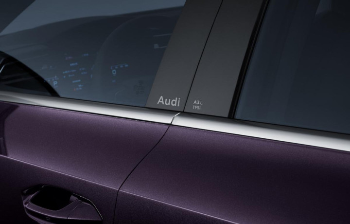 而在车身侧面,改款之后的奥迪A3在B柱区域加入了一些“小心思”,例如雕刻了“Audi”,以及对应的“A3 L”和“A3 Sportback”字样,这些细节上的处理也会让整车显得更加精致。